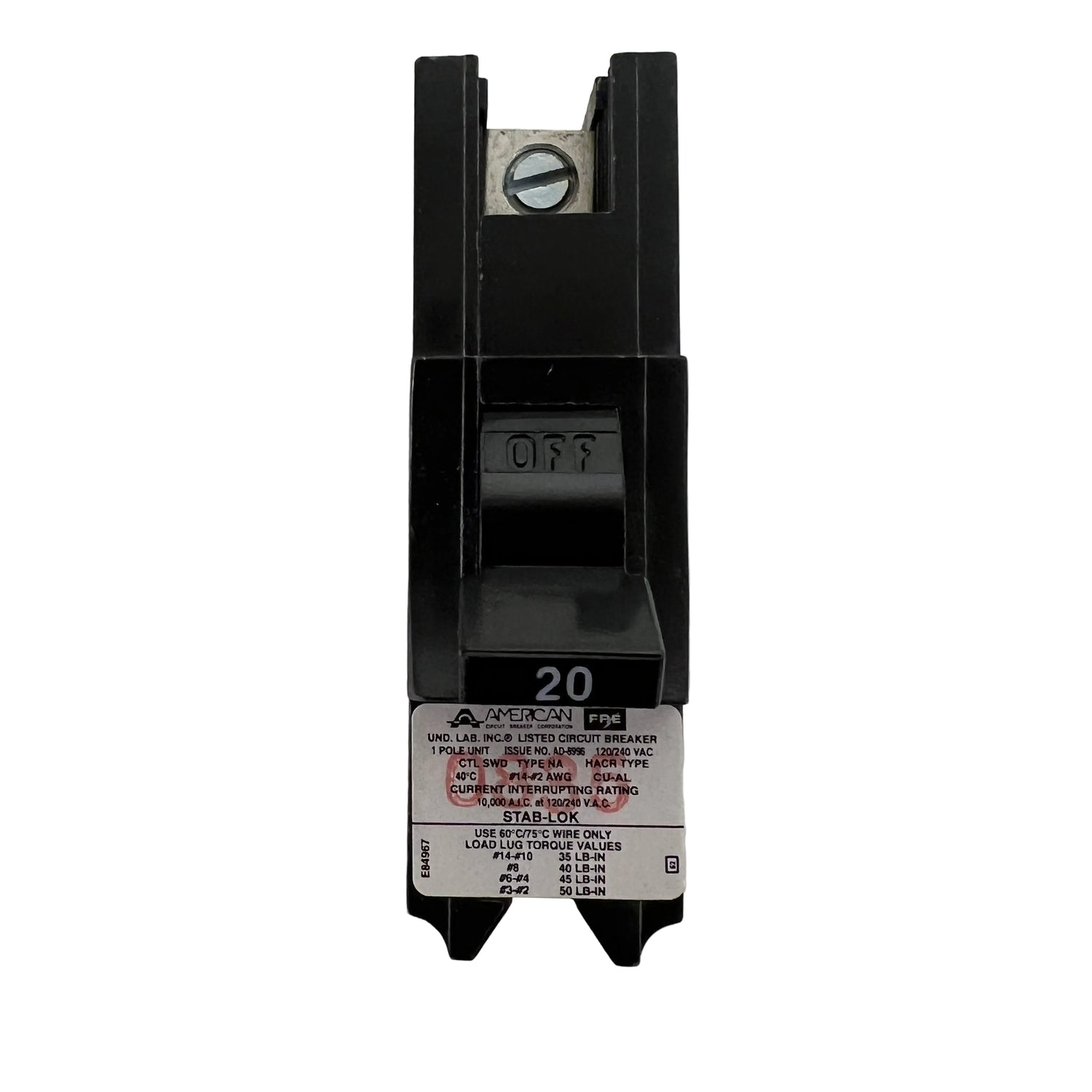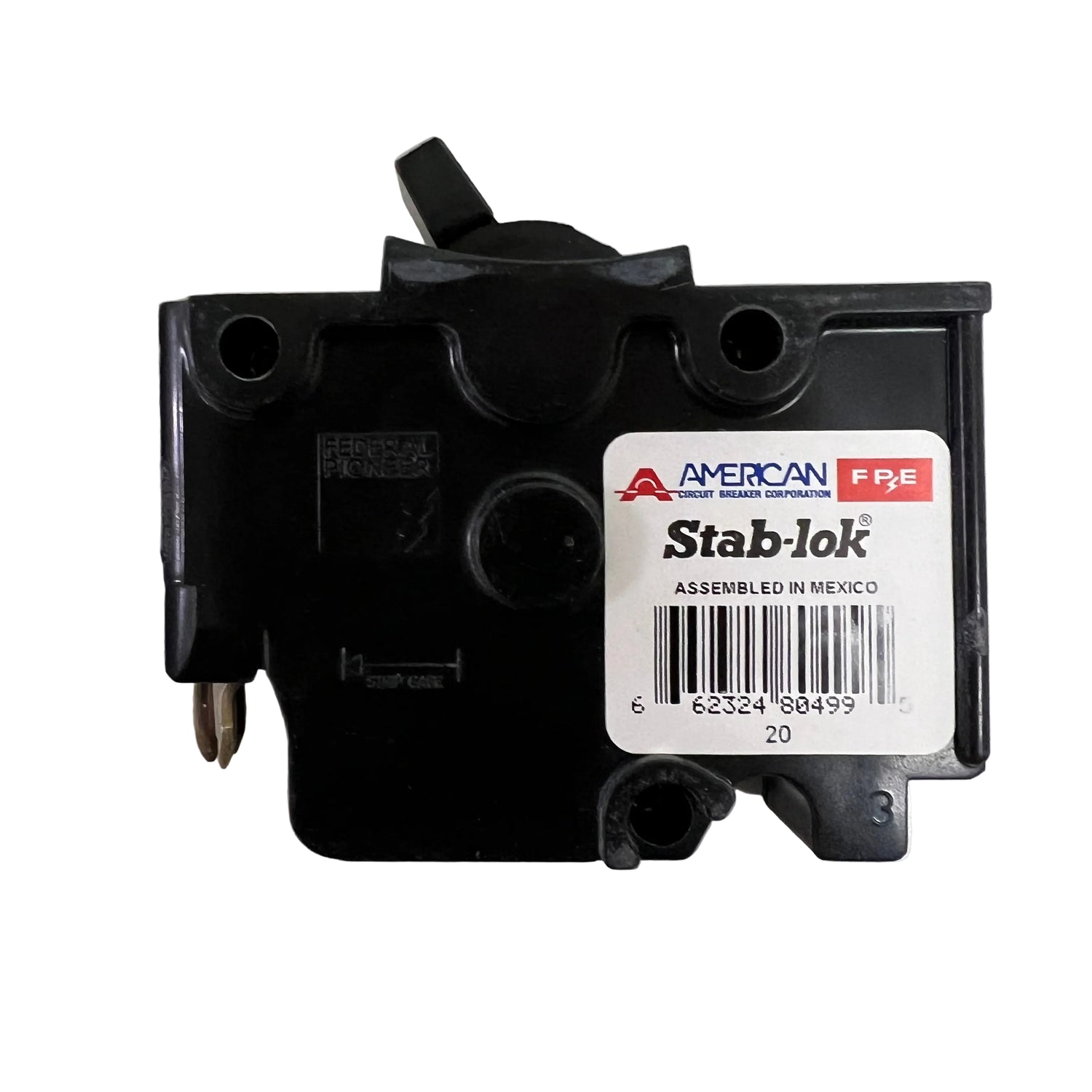This Federal Pacific Electric 20 amp, single pole, thick series circuit breaker is used in a 120/240 volt load center. It is a 1 pole, 20 amp thick model that is 1 inch wide and NA mounting type. It features a plug-in design for easy installation. Please note these breakers have gone through several iterations with red and black handles.